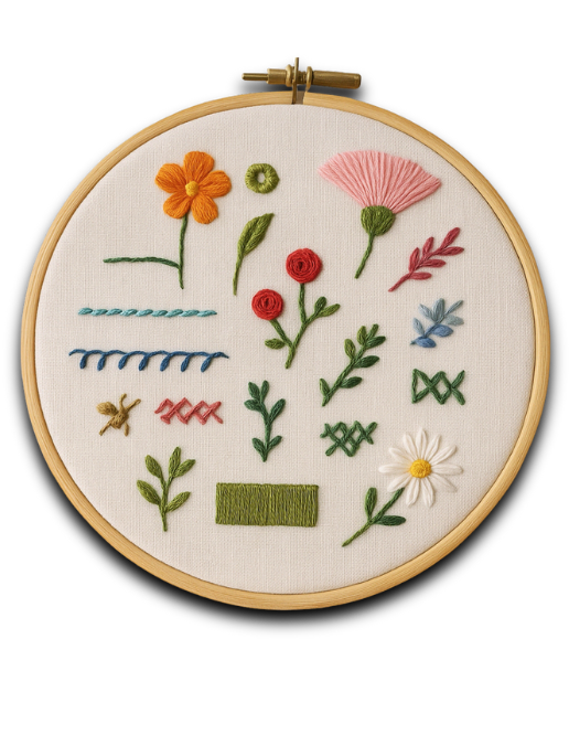 Llévate totalmente GRATIS una colección práctica y visual que reúne los puntos más usados, versátiles y decorativos del bordado a mano. Ideal para consultar mientras avanzas en el curso o para inspirarte cuando quieras crear tus propios diseños.